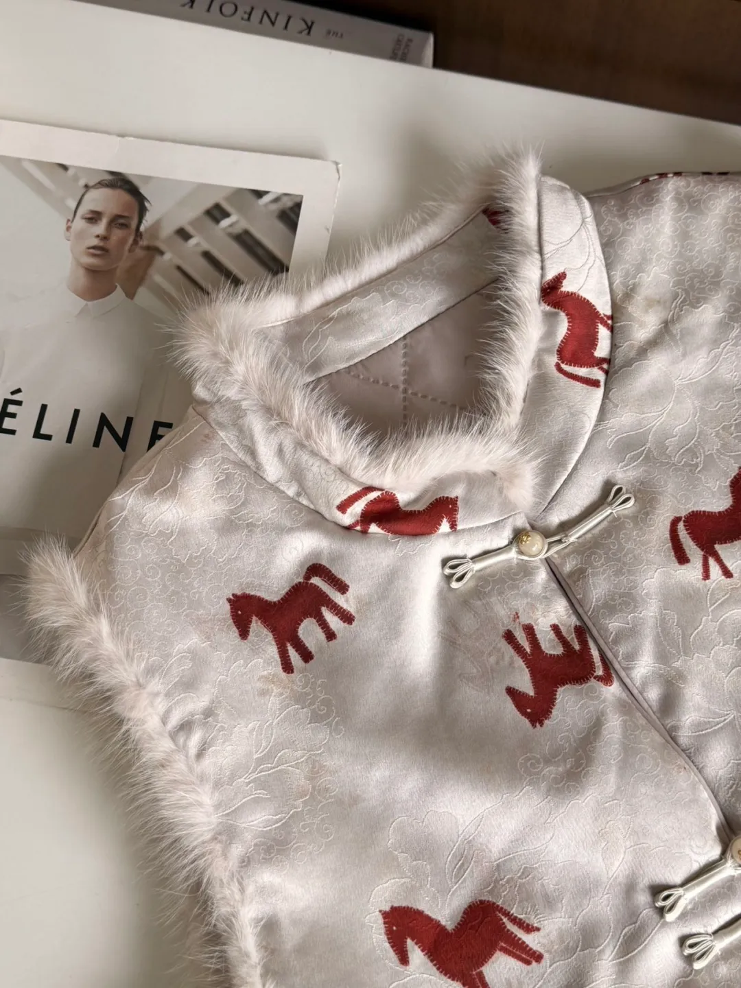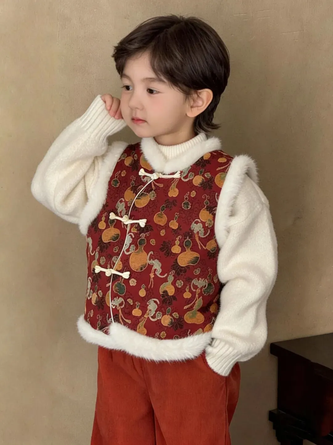 炸炸最爱的就是这件金鱼马甲,白色的内胆配上红色的绒毛,那一股书香门第的味儿都要溢出来了。