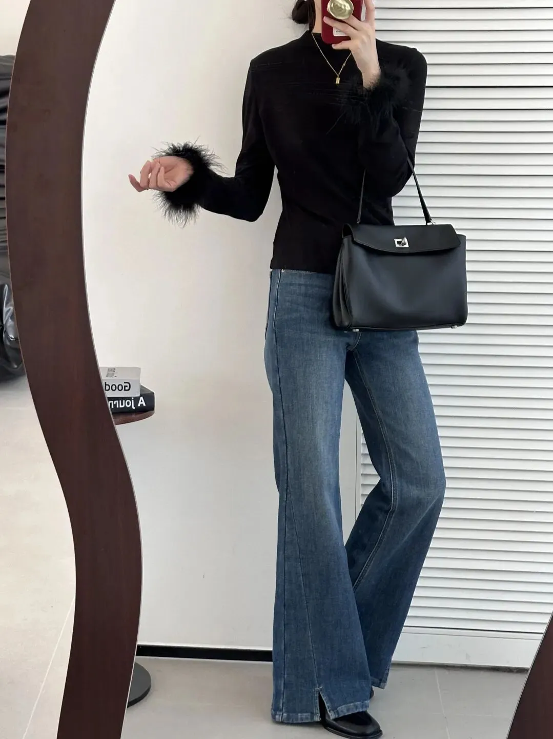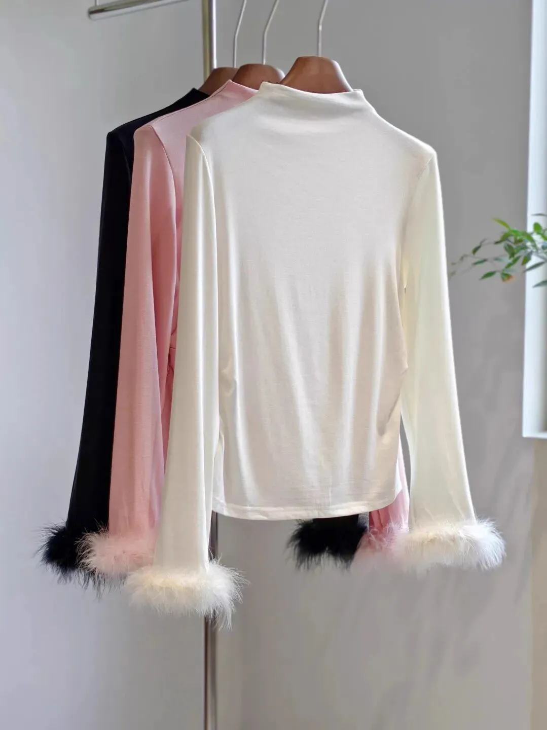 为了搭配的统一性,这次也安排了毛毛袖口的高领打底。