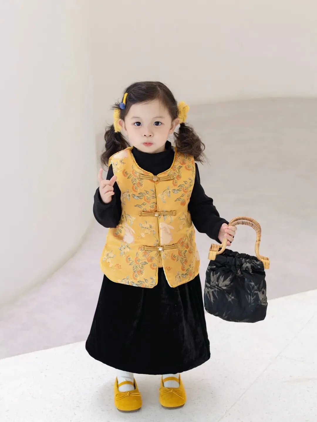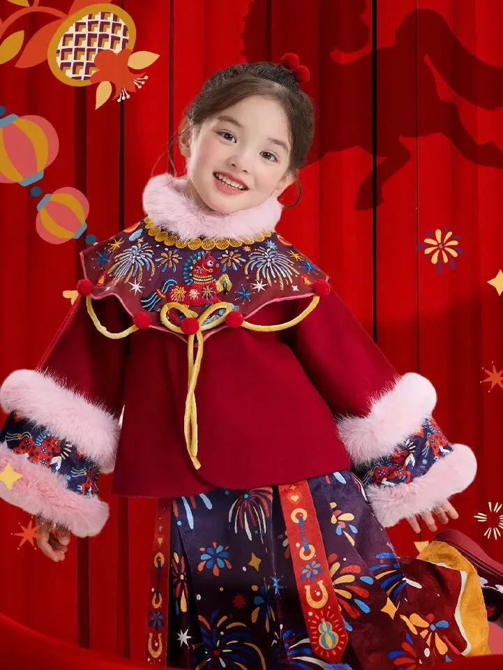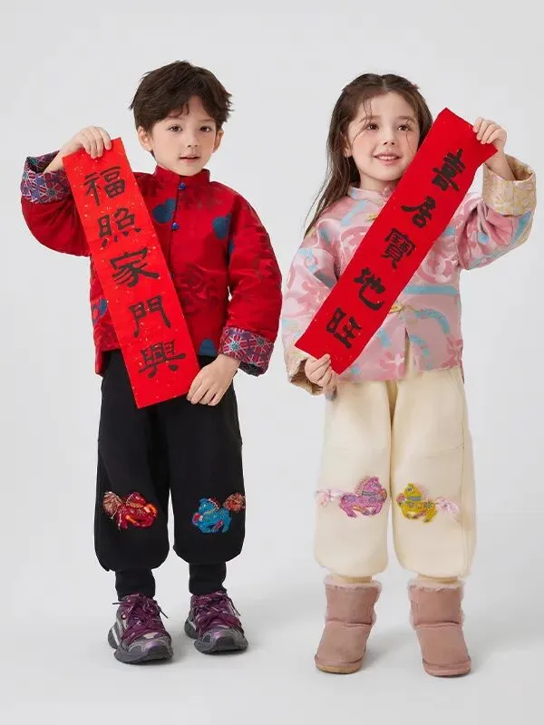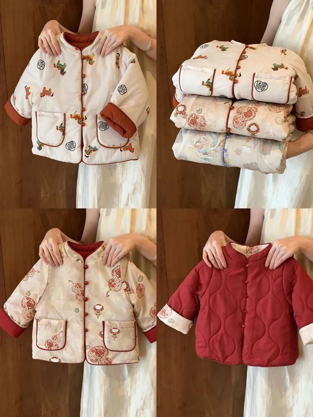 以前的名画里小孩过年穿的直接被做出来了,看到这件已经能想到小小的人拿着红包在院子里玩的样子了。