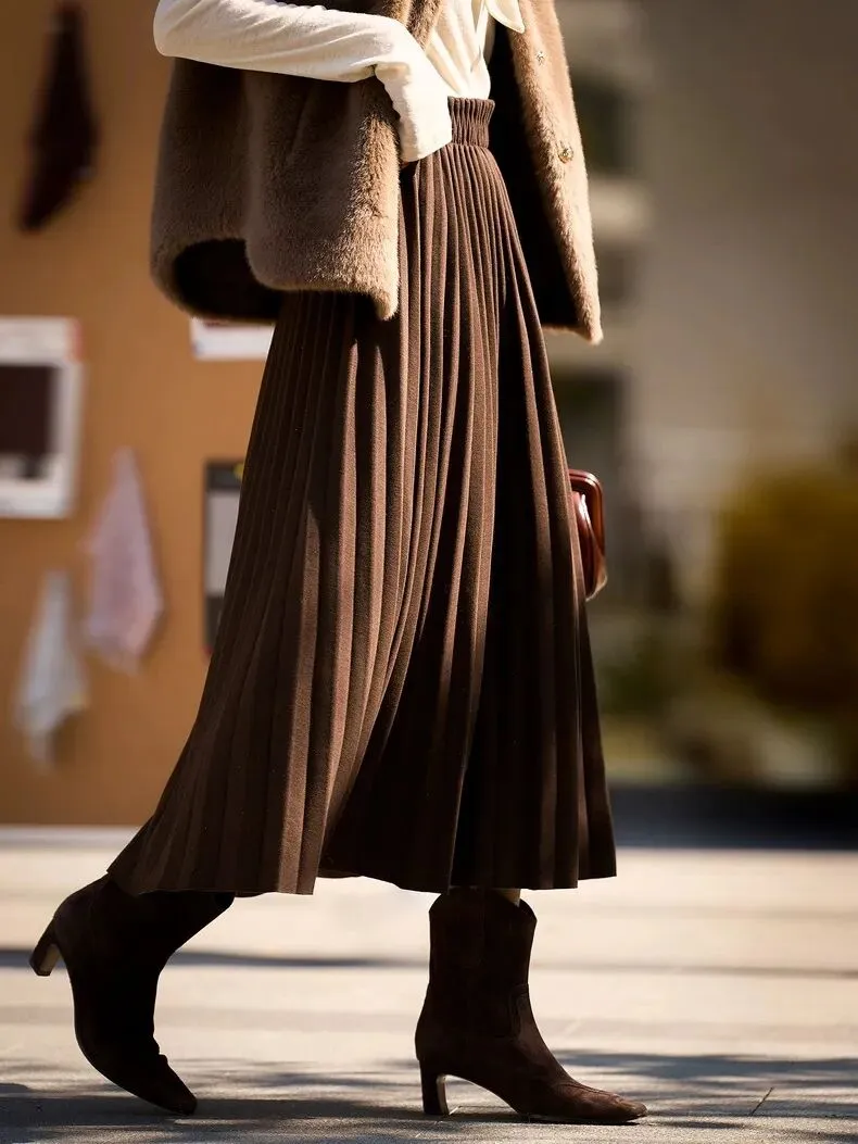 羊毛百褶裙大摆A字半身裙