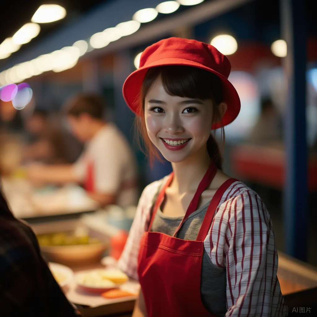 林树的摊位是自制的发光餐车,代码功底用在了灯光编程上——招牌会根据温度变色。