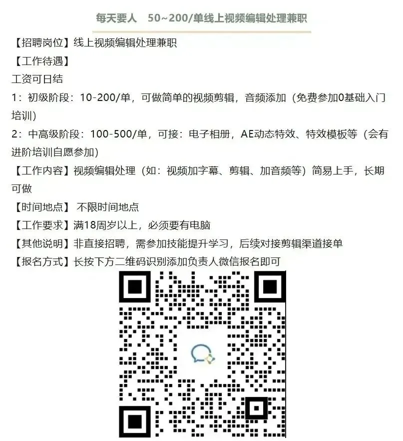 【招聘岗位】视频号扫码视频兼职