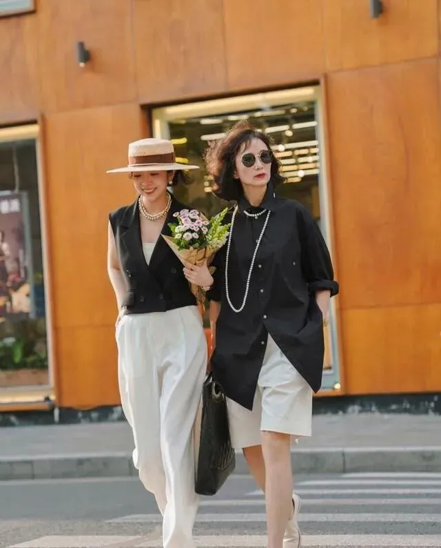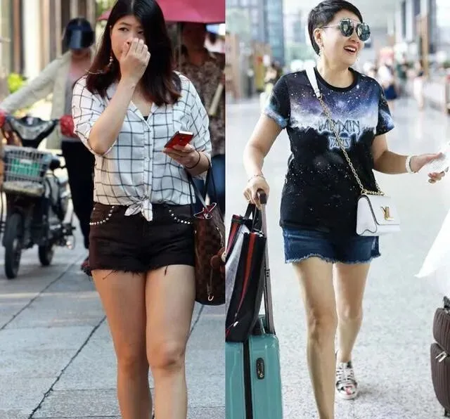 裤腿就到大腿根那儿 , 露肤面积太大了 , 中年女人穿着总有种"硬凹少女感"的违和。