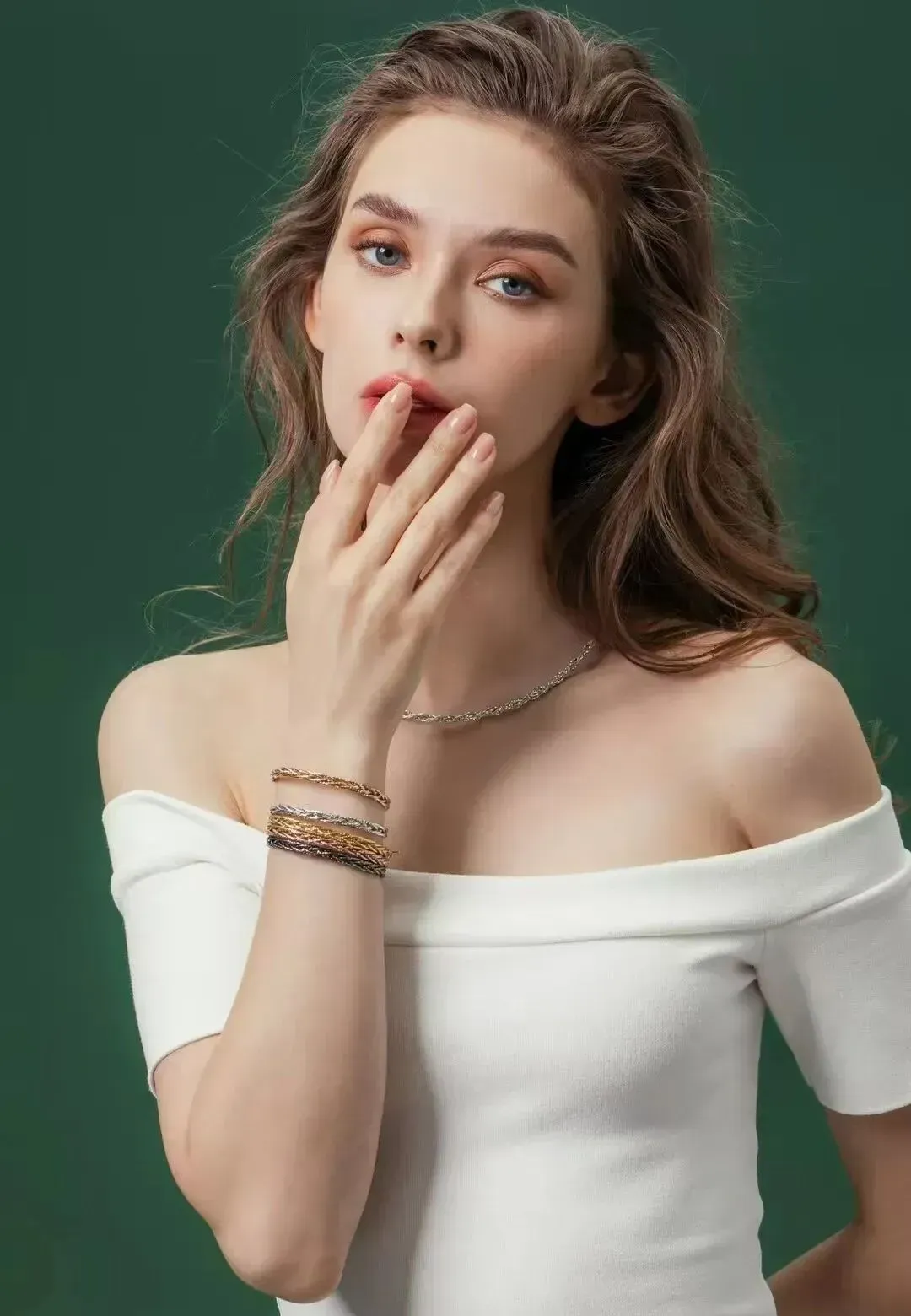 最绝的是她的“风格切换自由”:淡妆时,眉眼柔和,笑容清甜,像清晨洒在草坪上的阳光,自带清新治愈感,适配各类日常穿搭、美妆护肤的淡妆硬广;浓妆时,眼尾上扬自带凌厉感,红唇搭配冷艳神情,秒变晚宴焦点,撑起轻礼服、高端美妆等需要高级感的品类。这种“可甜可盐可欲”的五官特质,让她的镜头表现力远超同类型模特。