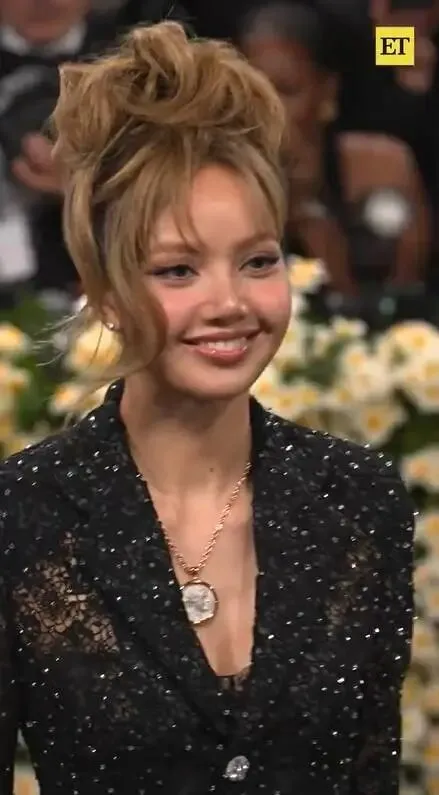 黑蕾丝西装+LV老花丝袜+宝格丽钻石choker——Lisa这套美学直接杀疯热搜。艺术家Henry Taylor手绣的罗莎·帕克斯肖像在后背若隐若现,每走一步都在挑动网友神经。外网吵翻天:有人赞"先锋艺术解构权力"。