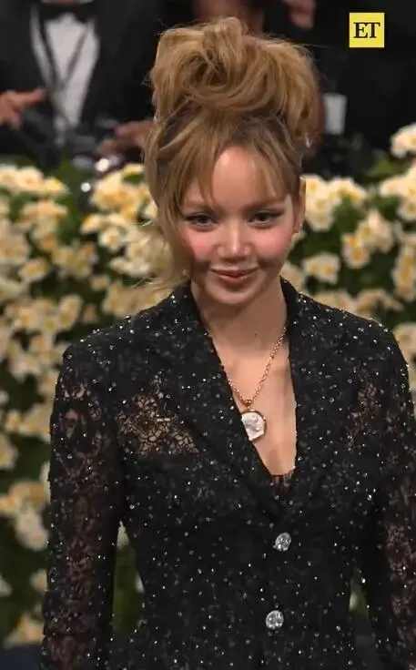 但真正王炸的是AR技术投影。首尔东大门夜市、弘大涂鸦墙在她周身流转,直接把文化输出玩成科幻大片。有人说她是行走的K-pop文化图腾,也有人酸"科技盖过设计"。要我说:当别人还在卷布料厚度时,顶流早把红毯变成沉浸式元宇宙了!