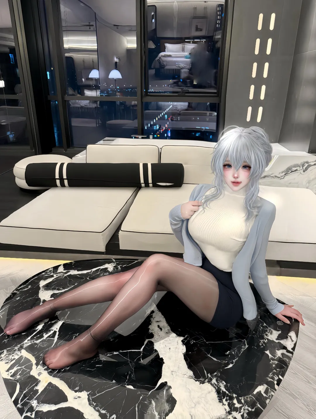 当前位置:首页>美女资讯>窒息级蜂腰!雪女毛衣紧裹丰腴弧,马油黑丝透玉光