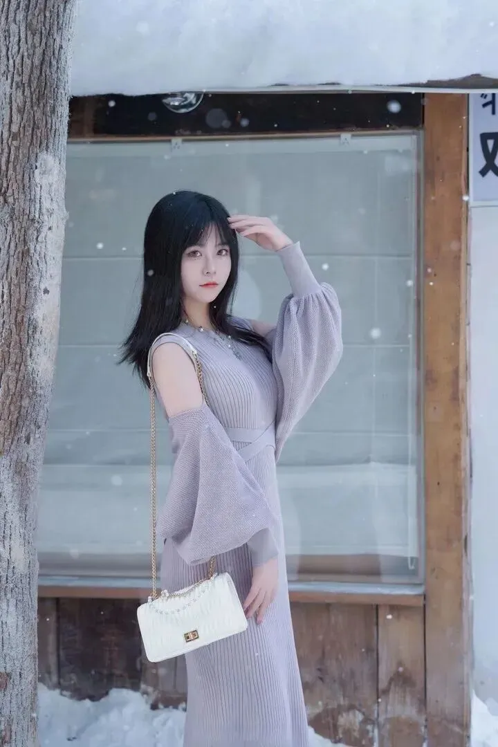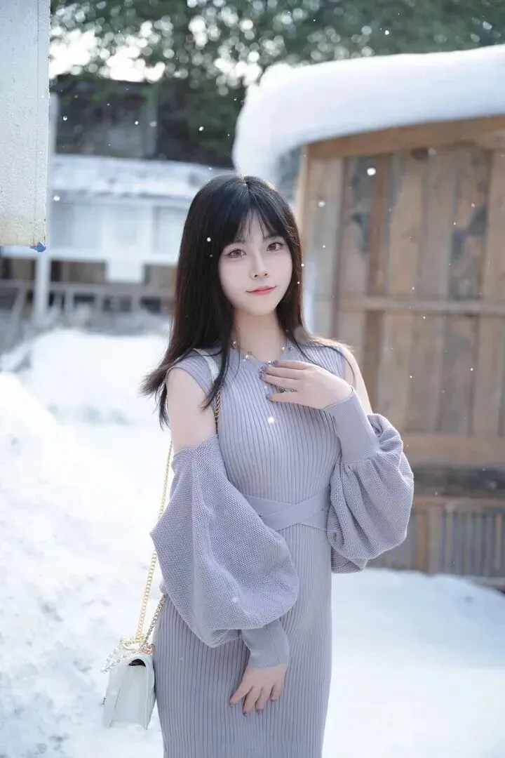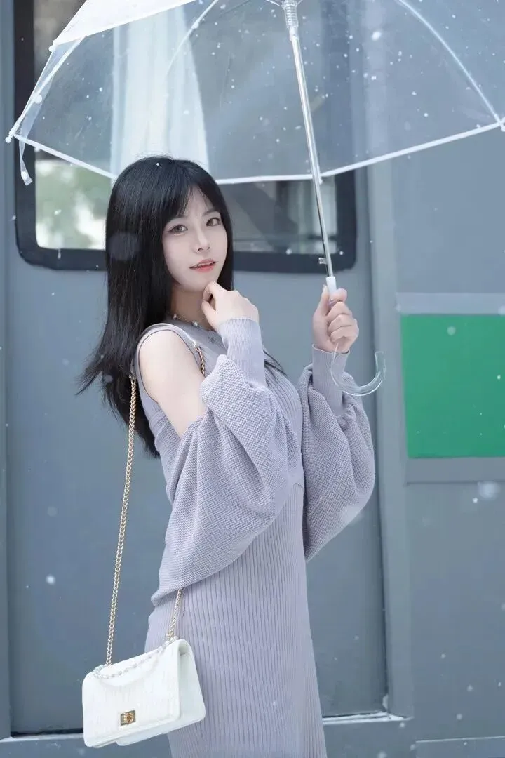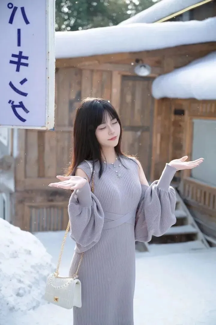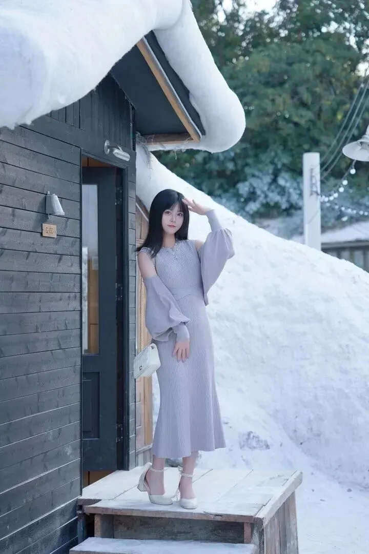 .浅灰色.真是冬天.里的宝.藏颜色.。它不像黑.色那.么沉闷.,又比白色.多了一点.沉稳.。小姐姐身.上这件.浅灰色针.织连衣裙,.版型特.别显身材。.竖条.纹的设计本.来就显.瘦,再加.上露.肩和灯笼.袖,.整个人看.起来轻盈又.灵动.。她搭了.一条珍珠.项链,拎着.白色链.条包,.站在飘雪的.街头.,整个人都.在发光.
