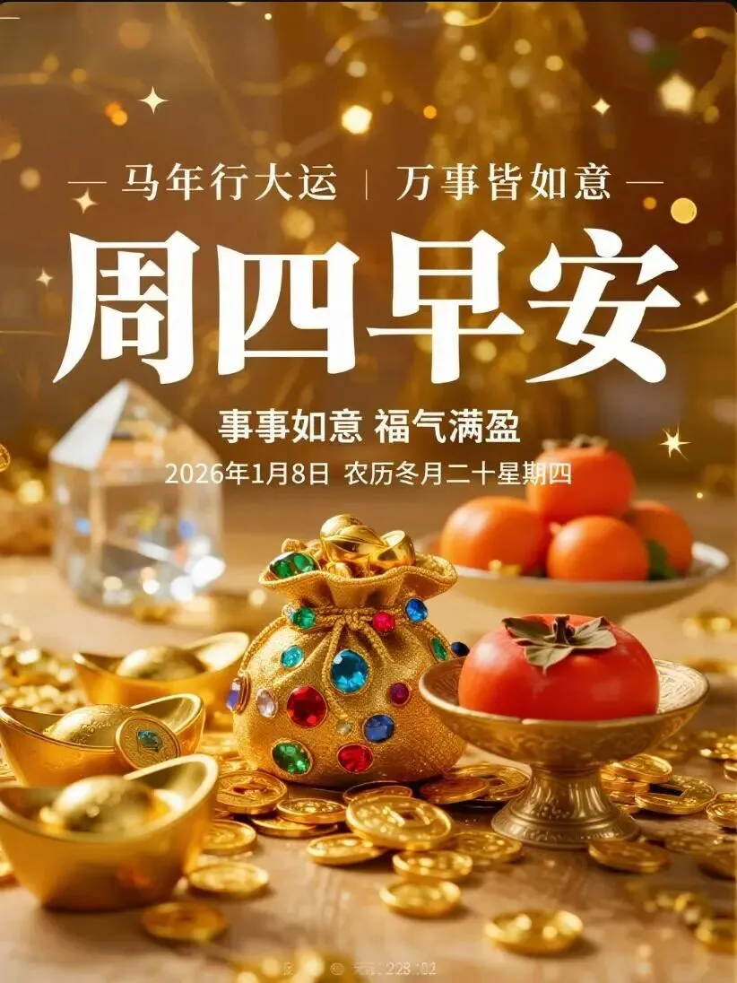 当前位置:首页>美女资讯>2026年1月8日早安图片带日期,周四祝福图片
