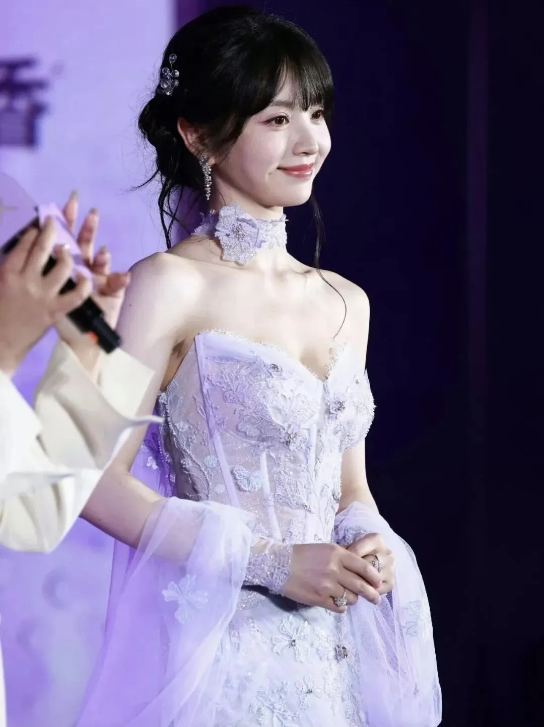 田曦薇的这身紫色抹胸裙造型,是一次从色彩、剪裁到细节搭配的全面胜利。它成功地将仙气的唯美、蕾丝的性感、轻纱的飘逸与绣花的优雅融为一体,并通过她本人无与伦比的甜美笑容与巅峰的肌肤状态,最终升华为一个令人过目不忘的经典瞬间。她不仅穿对了一件裙子,更穿出了一种氛围,一种态度,生动地证明了真正的时尚偶像,能以一身衣裳,点亮整个空间,并成为无数人心中关于“仙美”二字的最新定义。