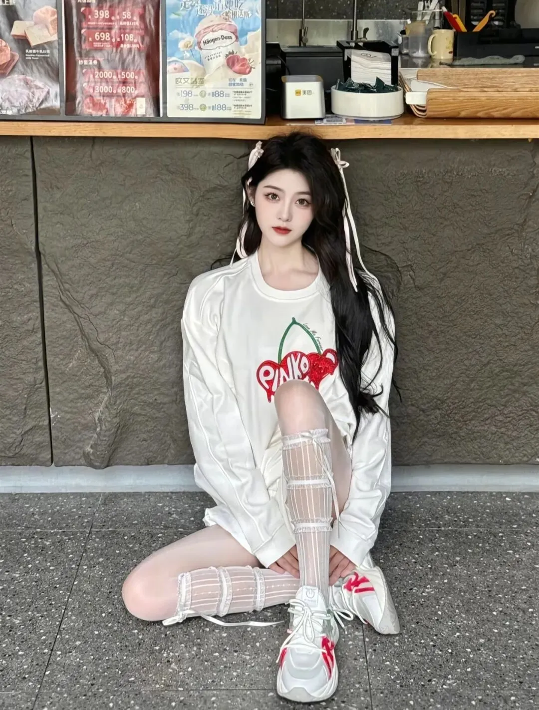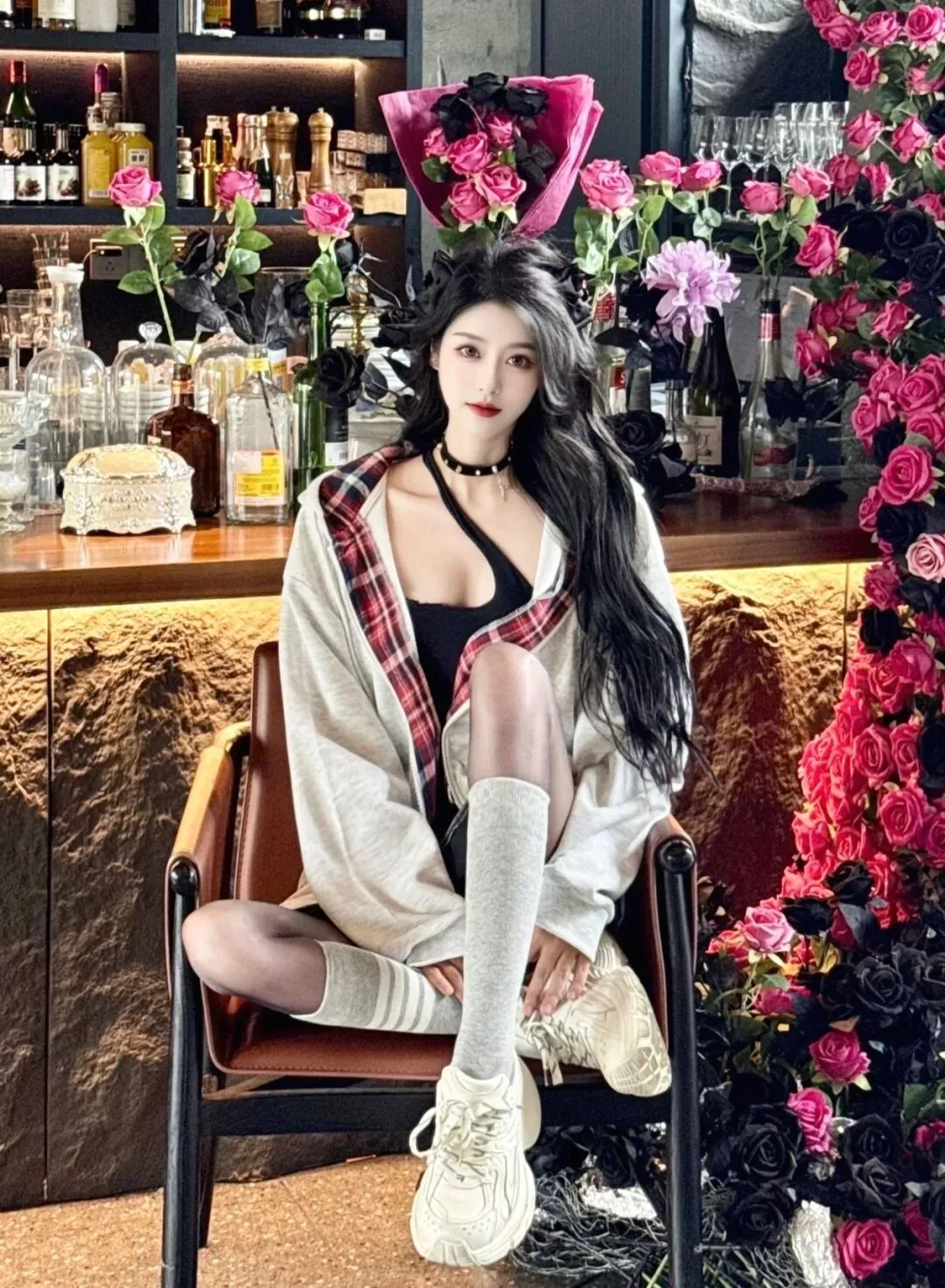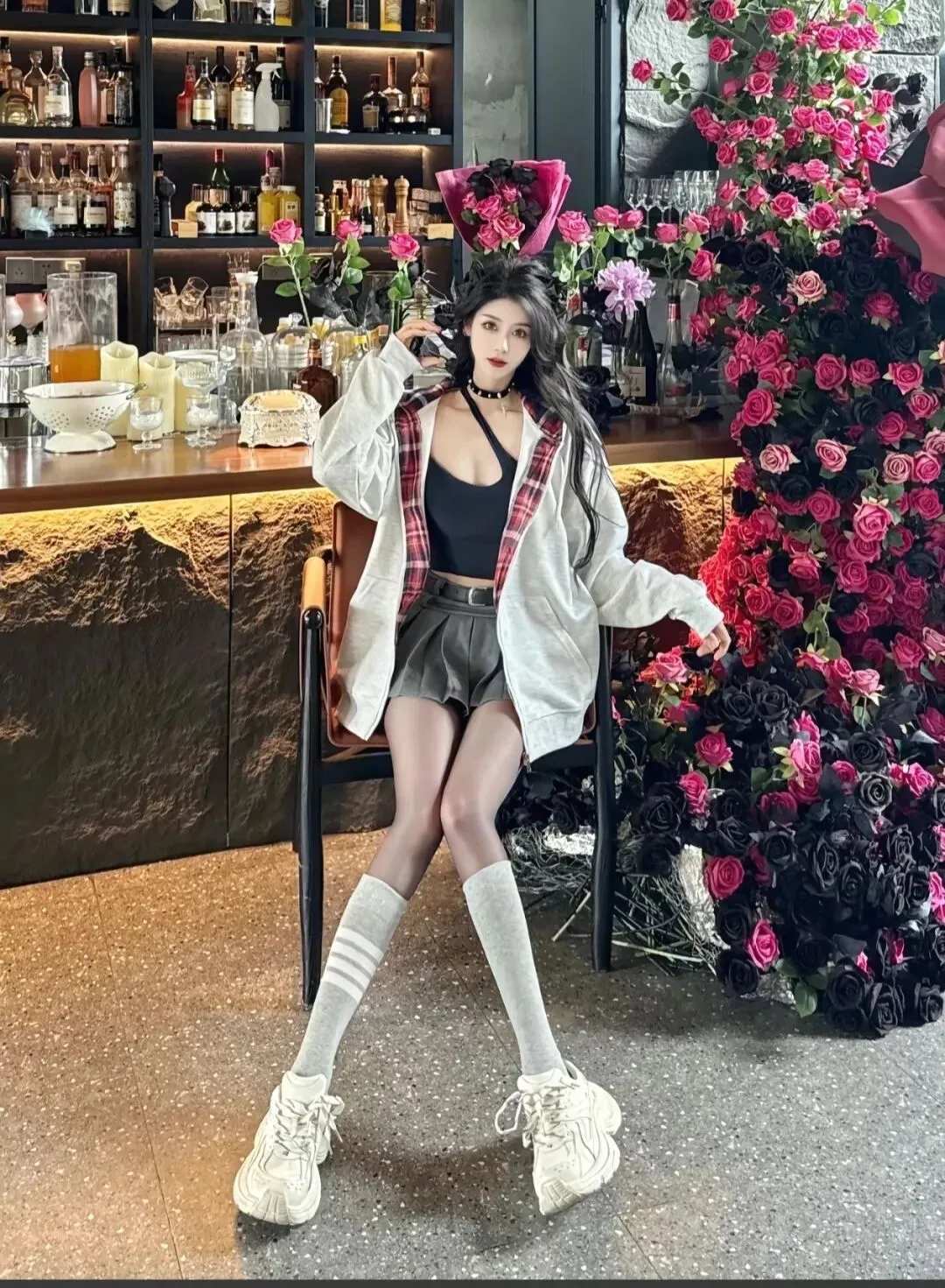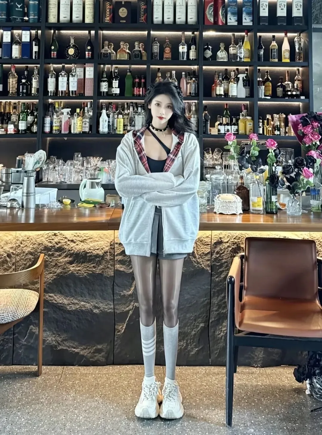 当前位置:首页>美女资讯>内搭蕾丝小吊带+黑丝,甜酷反差感拉满