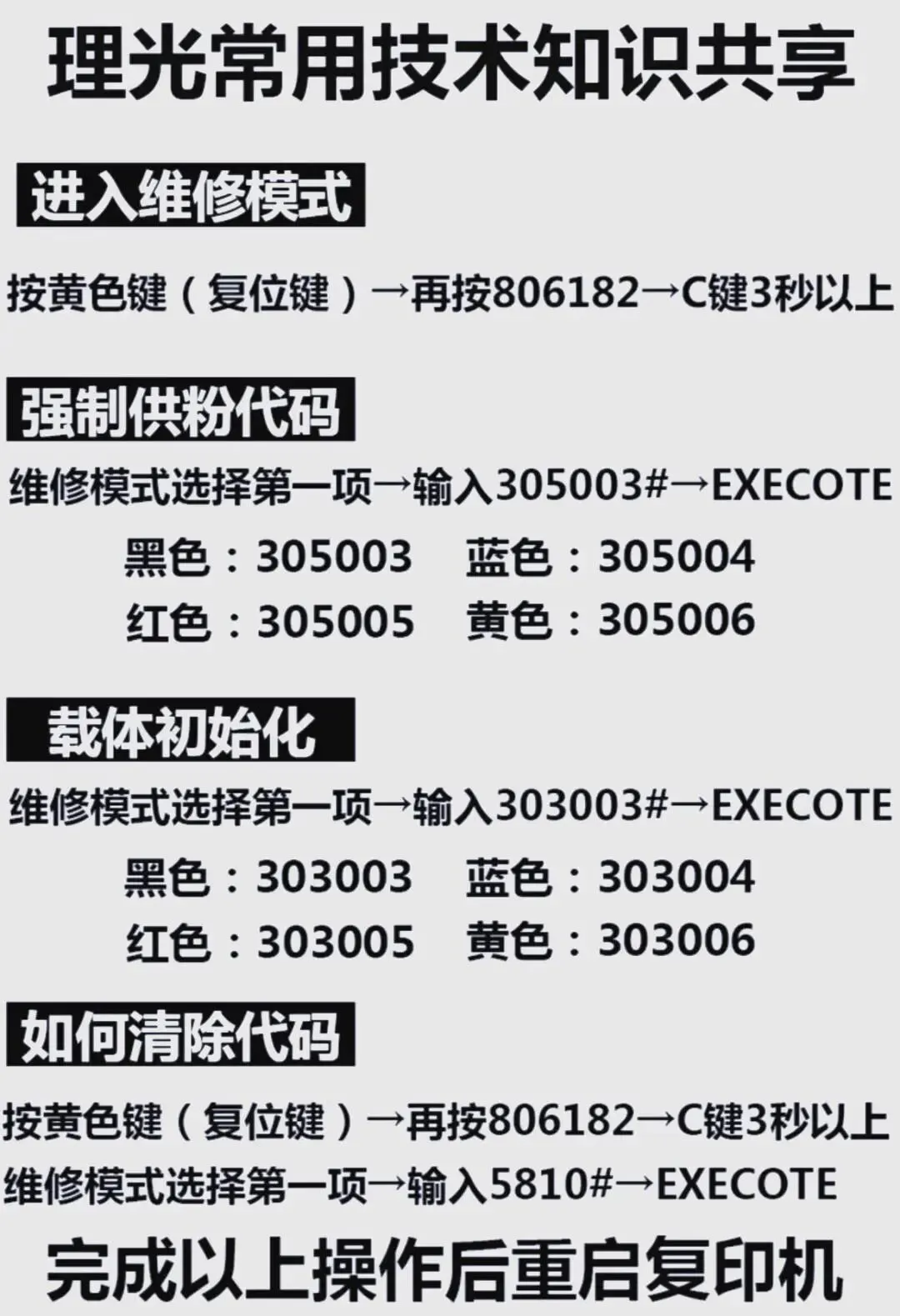 当前位置:首页>美女资讯>理光复印机不能供粉,补粉,铁粉载体初始化方法,卡纸,故障代码清除,维修模式故障消除方法
