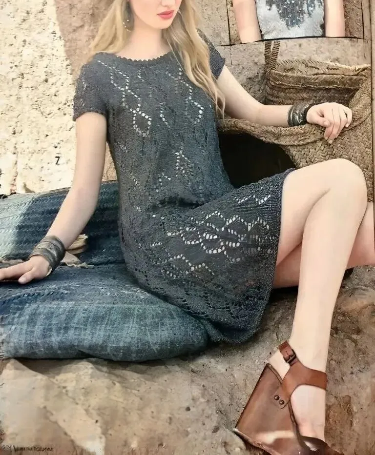 当前位置:首页>美女资讯>棒针裙装(三七)菱形镂空花纹短袖A字版蕾丝连衣裙,附图解教程
