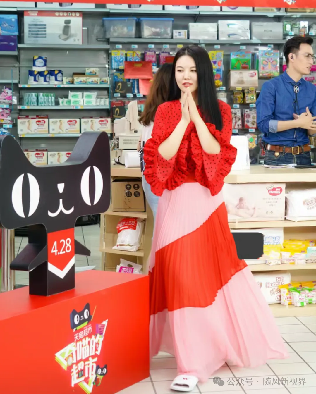 在另一场合,李湘选择了一条红色波点连衣裙,这件裙子以其活泼的波点图案和鲜艳的红色,充满了青春的活力和甜美的气息。荷叶袖口的设计巧妙地增加了服装的立体感,使得整体造型更加生动有趣。而裙摆的颜色拼接则是巧妙的视觉冲击,让人眼前一亮。