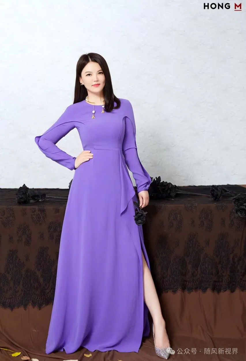 在一次公众活动中,李湘身着一袭紫色开叉长袖拖地长裙,尽显高贵气质。这条裙子的设计巧妙地结合了优雅与性感,长袖与拖地的裙摆为其增添了一份庄重感,而大胆的开叉设计则恰到好处地展露出她的美腿,为整体造型增添了一抹诱惑。紫色作为一种颇具王室贵族气息的颜色,更是让她在众人中脱颖而出,成为了聚光灯下最耀眼的存在。这样的穿搭不仅展现了李湘对自身身材的自信,也体现了她对时尚的敏锐洞察力和独到见解。