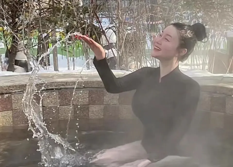 关婷娜在社交媒体上分享了她在雪乡游玩的视频,一开始便是她身穿连衣泳衣,在雪乡著名的温泉里泡澡。温泉雾气缭绕,她身着黑色泳衣,毫不拘谨地出镜,一边享受着温泉的温暖,一边与粉丝和网友进行互动。