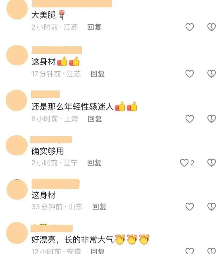许多网友毫不犹豫地说出了“大长腿”、“身材太棒了”,甚至有网友称赞关婷娜“依旧年轻性感迷人”、“美丽动人,气质非常出众”。