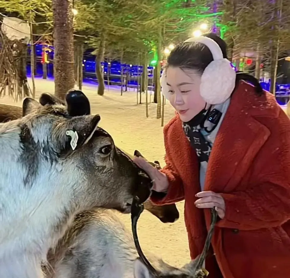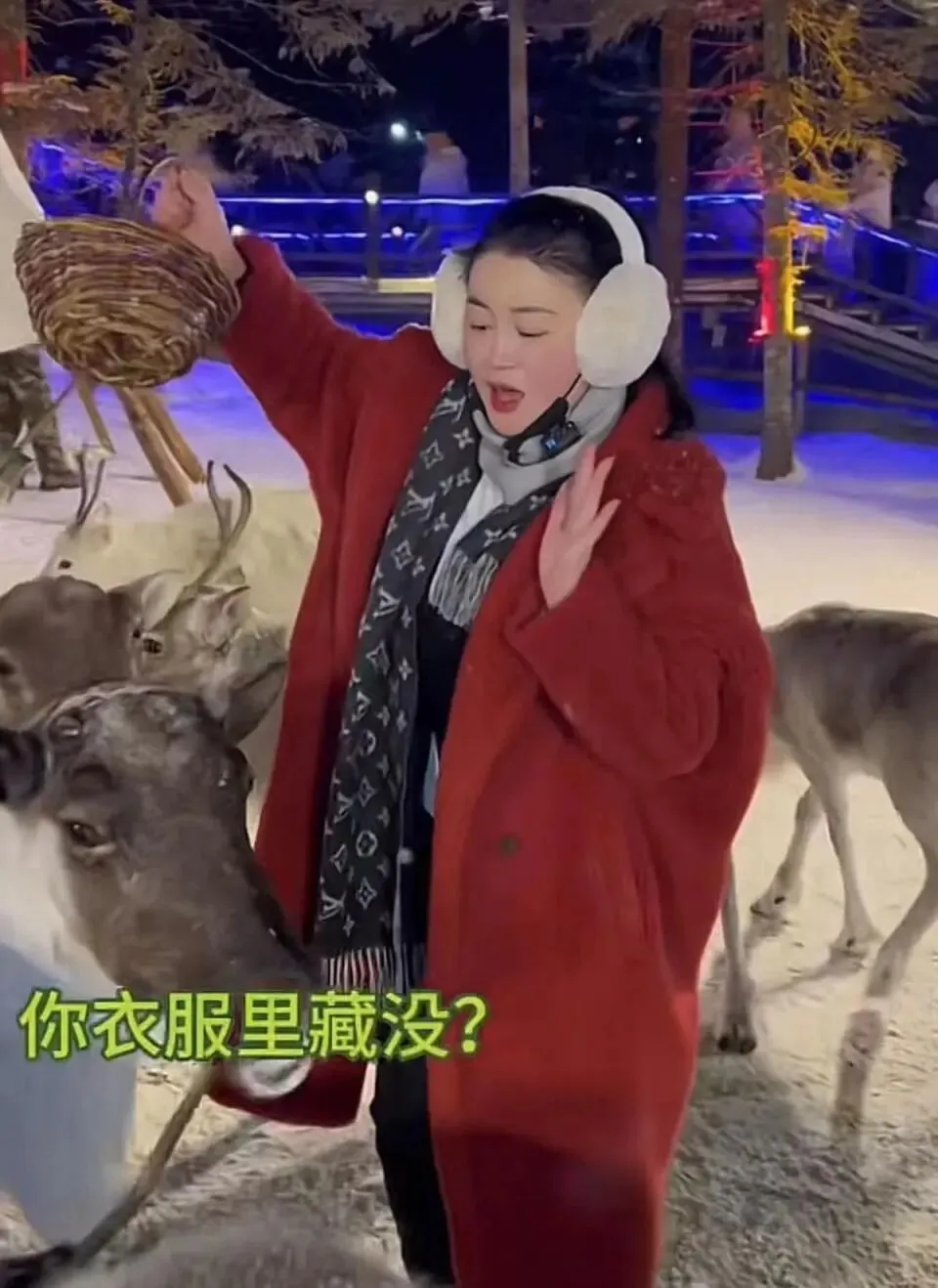 关婷娜在户外蹦迪活动结束后,与小鹿进行互动。她一边喂食,一边和小鹿交谈。当小鹿围在她身边时,她惊叫起来,声音中还带着少女般的娇俏,与她高贵的形象形成了鲜明对比。