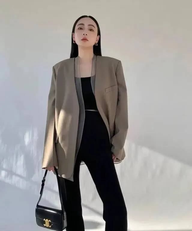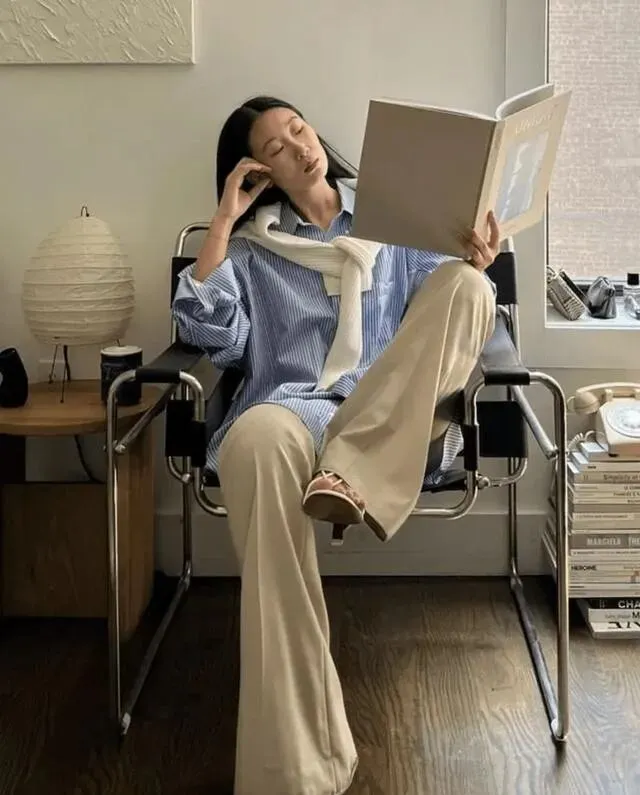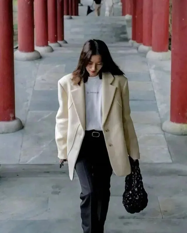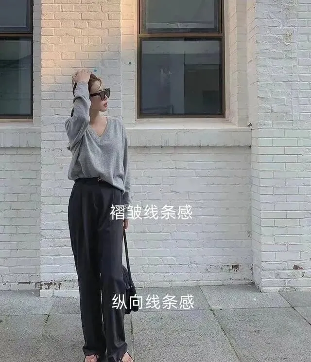 西装裤本身风格偏正式 , 配个柔软的上衣能中和一下 , 不会太刻板 , 混搭出来还挺时髦的。