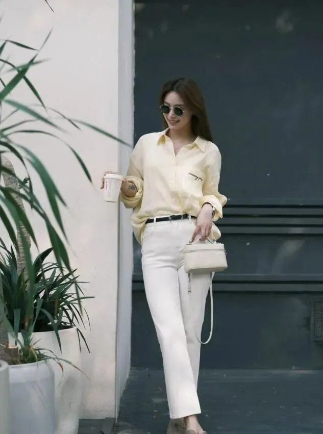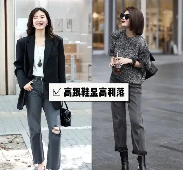 烟管裤配高跟鞋 , 哪怕是低跟的 , 精致感直接拉满。