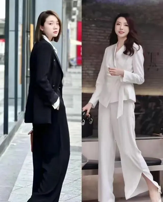西装套装最省心 , 上下同材质同颜色 , 高级感直接拿捏。