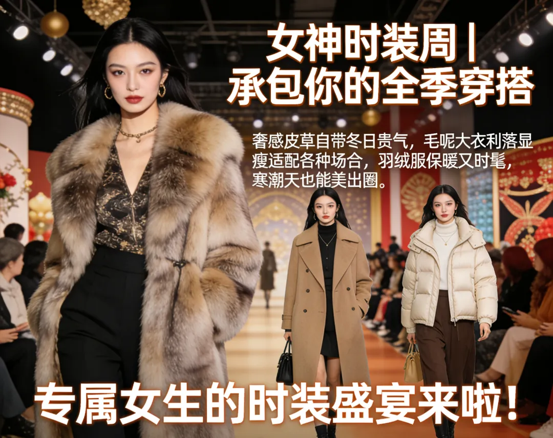 皮草自带冬日贵气,毛呢大衣利落显瘦,羽绒服保暖又时髦,寒潮天也能美出圈。水墨生香国风系列尽显东方雅致,反季夏装低价捡漏超划算!还有各式百搭裤子、精致裙子,解锁百变穿搭灵感。