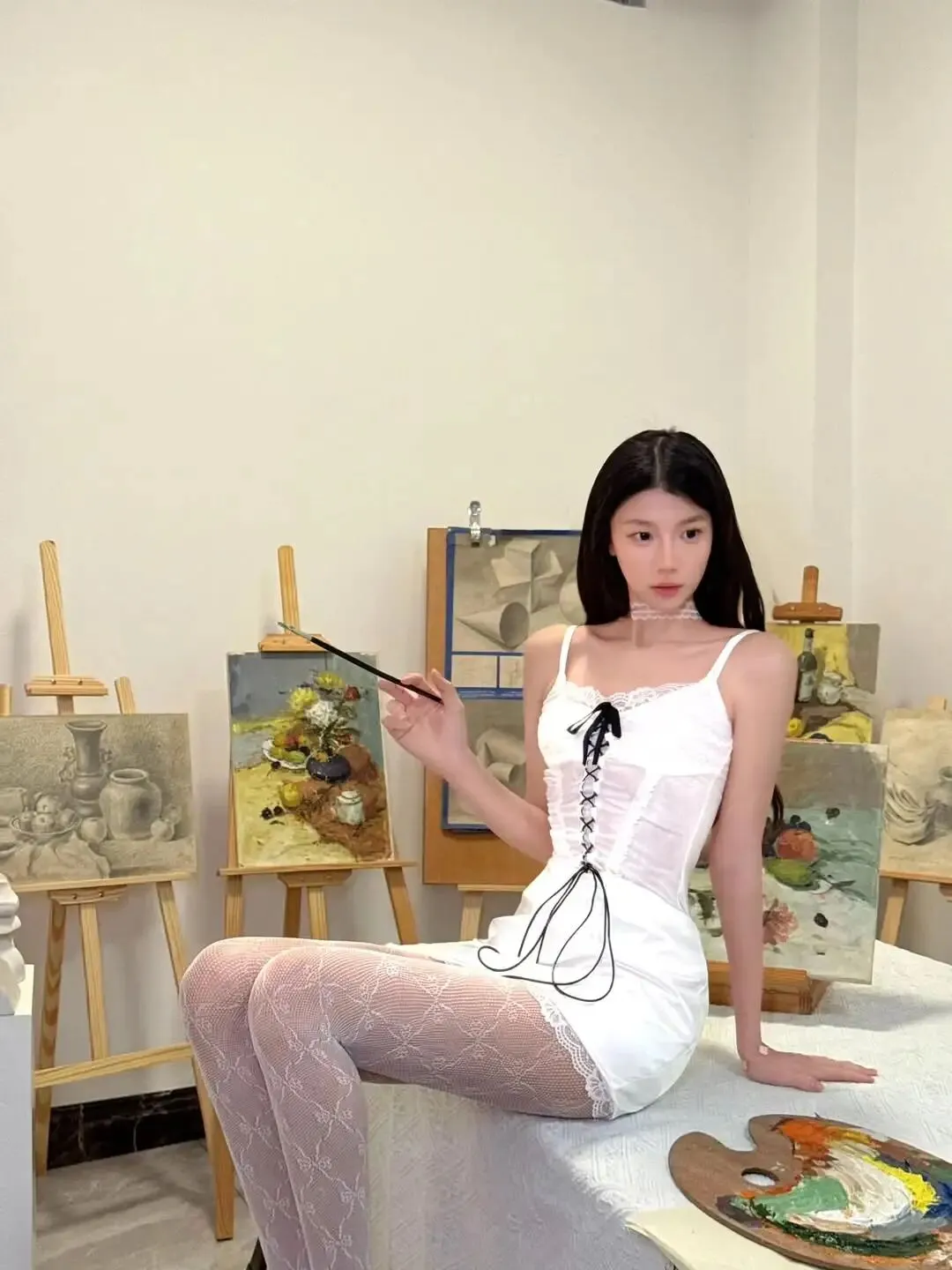 当前位置:首页>美女资讯>网红模特,时尚穿搭,白色吊带裙,细腰、白丝、大长腿