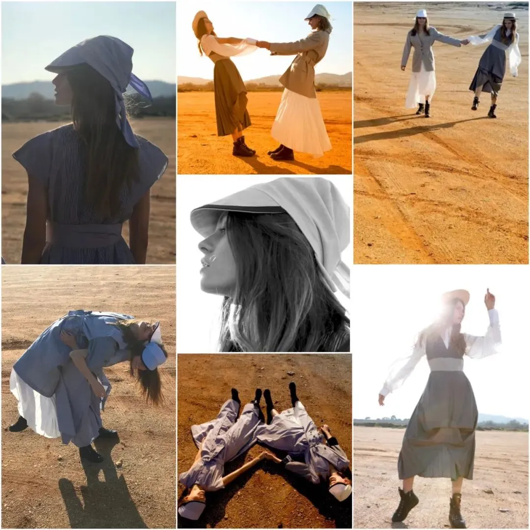 让她以极具雕塑感的静态姿势站立,而非奔跑或起舞。她的身体成为另一座由血肉构成的“风蚀岩”,将“人”重新定义为自然景观的一部分,而非闯入者。
