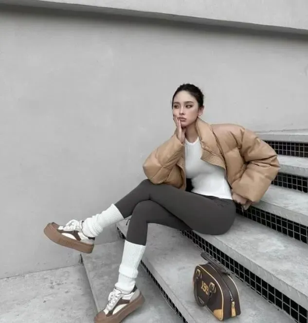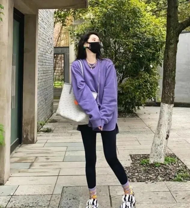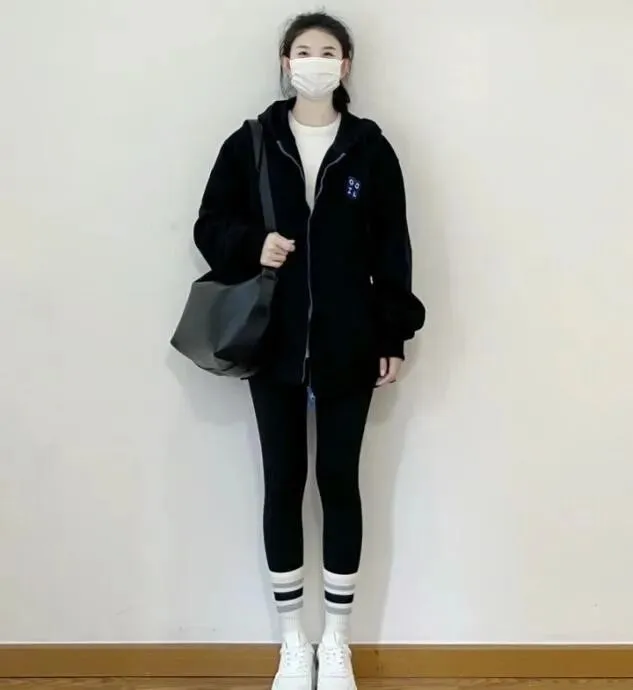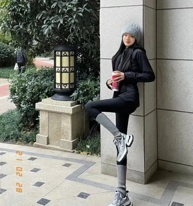 袜子款式一换 , 整个造型就变了 , 同一条黑色瑜伽裤 , 能搭出完全不同的感觉 , 怪不得最近这么多人在穿。