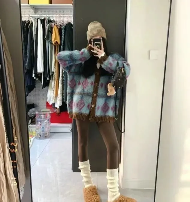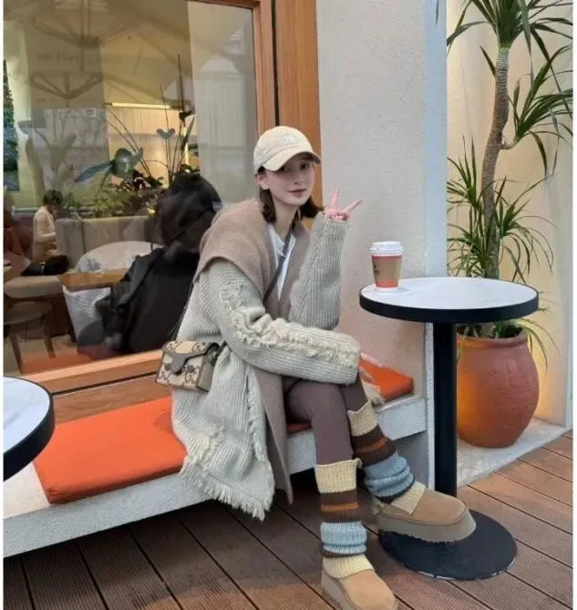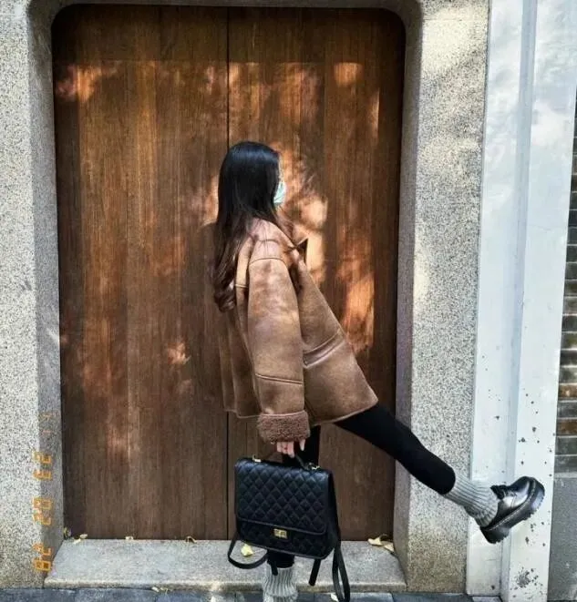 长外套盖住臀部 , 侧面看腰臀线条被弱化了 , 只露小腿 , 怎么穿都不会出错 , 配短袜 , 腿型完整不遮挡。