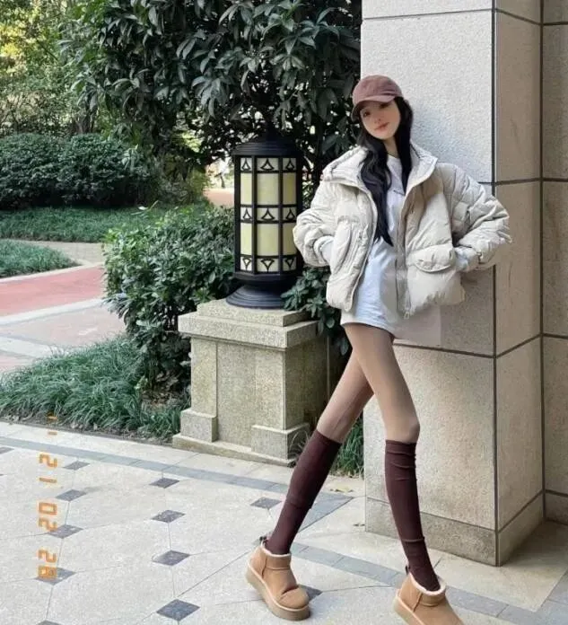 直接替代打底裤出门 , 保暖和修身都有了 , 再加双好看的袜子 , 细节感马上就出来了。