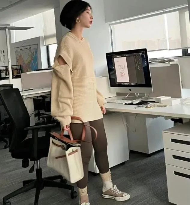 说真的 , 袜子裹瑜伽裤这个穿法 , 门槛不高 , 效果却很惊艳 , 关键是能把人人都有的基础款穿出新鲜感。