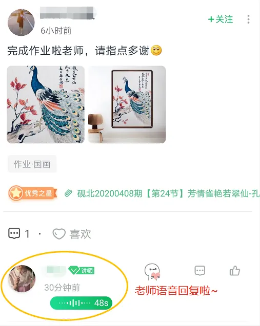 每次完成作品还能和小伙伴们互相交流,老师也会点评大家的作业。