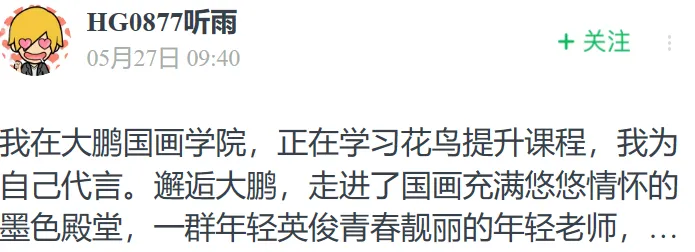 区别于目前“鱼龙混杂”的美术教育市场,大鹏教育的国画老师都具有专业美院背景。