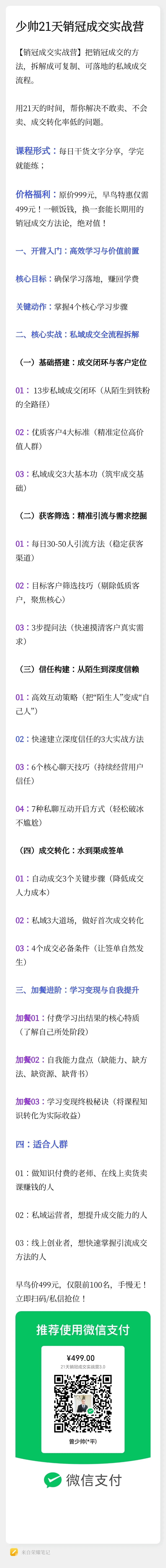 如果你也想学会如何聊客户、建信任、做成交,欢迎你加入我的【21天销冠成交实战营】,一起学习。