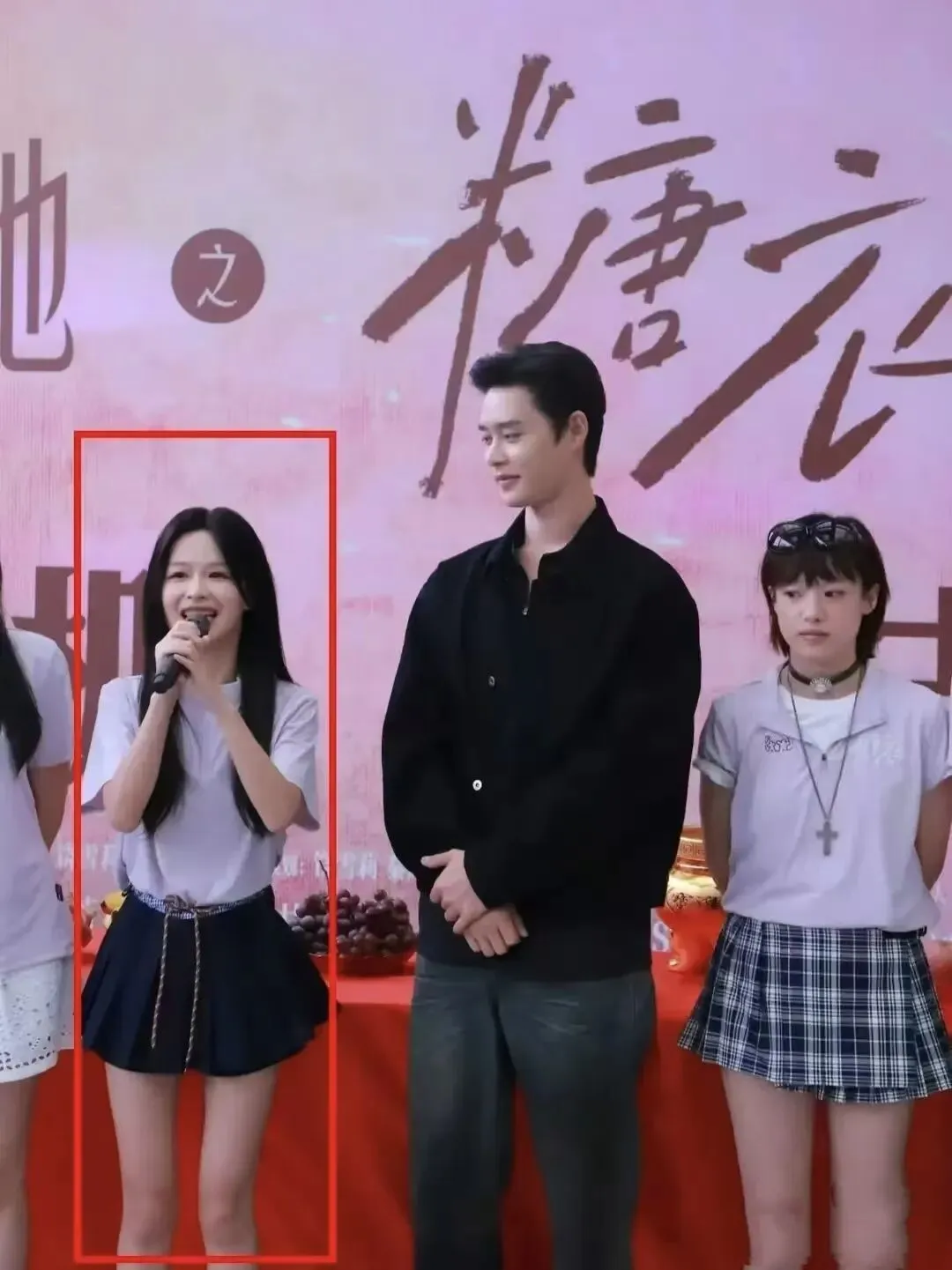 更致命的是身高硬伤,线下活动的生图不会骗人,她往人群里一站,明显比身边工作人员矮一截,目测也就155cm左右。