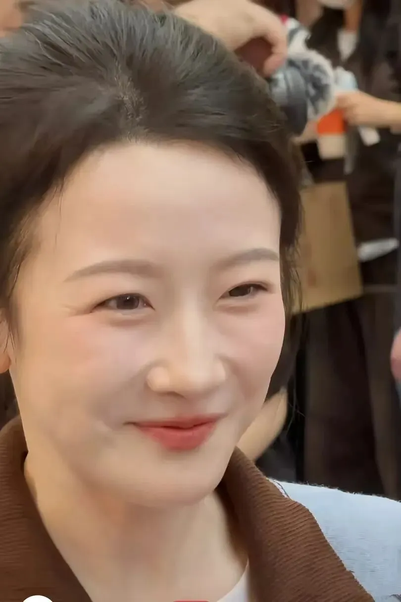 眼下细纹、法令纹特别突出,一笑起来眼角的干纹更明显,胶原蛋白流失的痕迹藏都藏不住,看着比剧里老了不少。