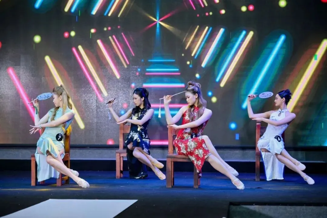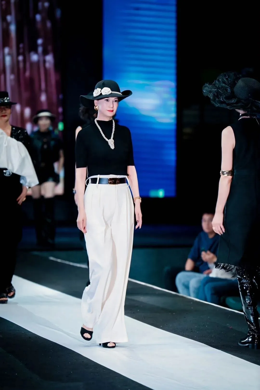 海南省旗袍协会模特艺术团带来的《黑白秀》,如一道清雅的水墨注入多彩的画卷。一黑一白,极简至臻。旗袍的立领盘扣,勾勒出东方女性独有的含蓄与风骨;开衩摆动的瞬间,又流淌着恰到好处的风情。她们的步伐沉稳雍容,气韵自成,在黑白对比的纯粹中,演绎了历经时光淬炼的经典之美,与年轻模特的现代时尚交相辉映