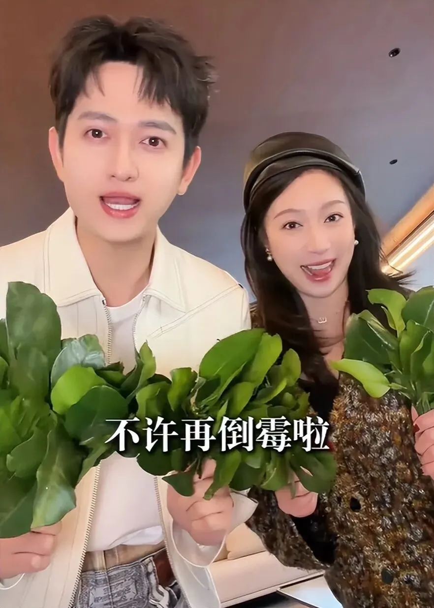 这夫妻俩穿的都很好看,尤其是他媳妇戴着帽子,两个人手拿着两把柚子叶,对着镜头一直拍打着,还嘴里说着把霉运全部都赶跑。