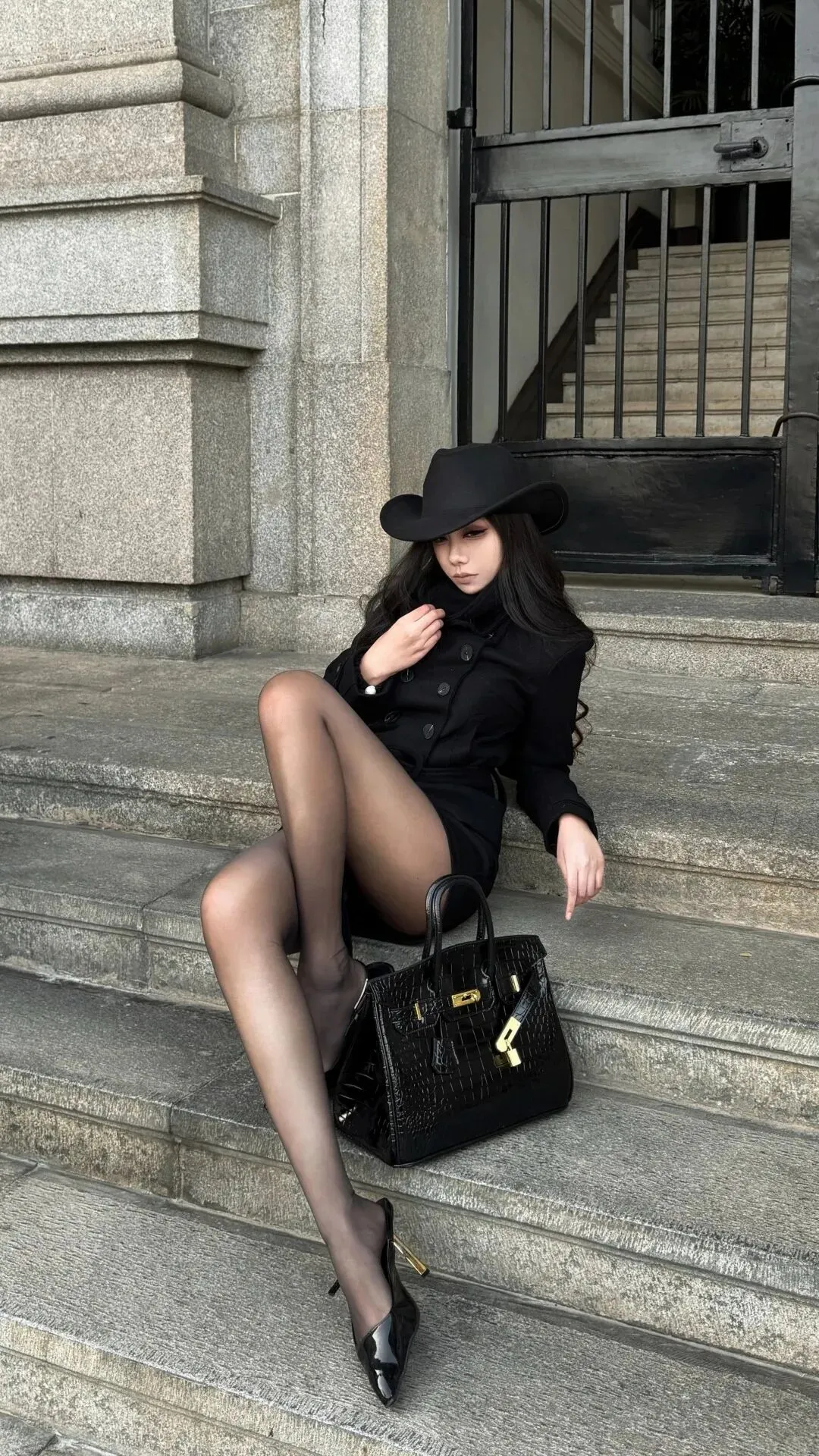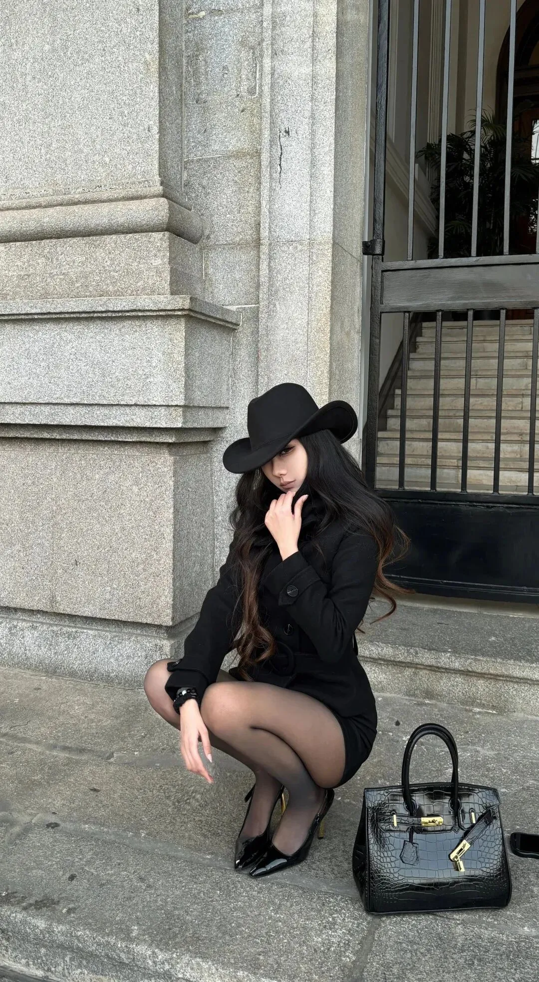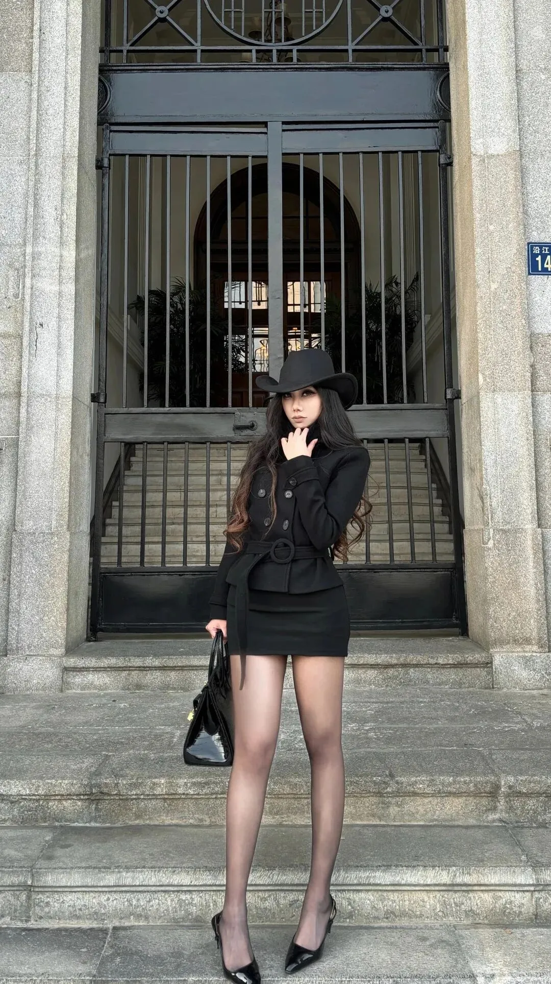 当前位置:首页>美女资讯>美女模特,宽檐礼帽、短外套、包臀裙、纤腰黑丝大长腿