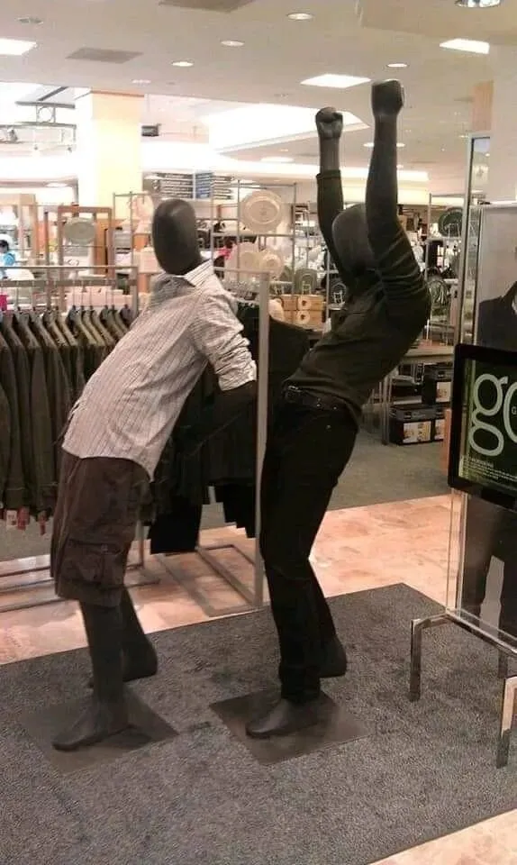 在服装行业,假人模特是不可或缺的,但是总有一些有趣的人,给它们摆了各种有趣的姿势,真的是笑不活了。