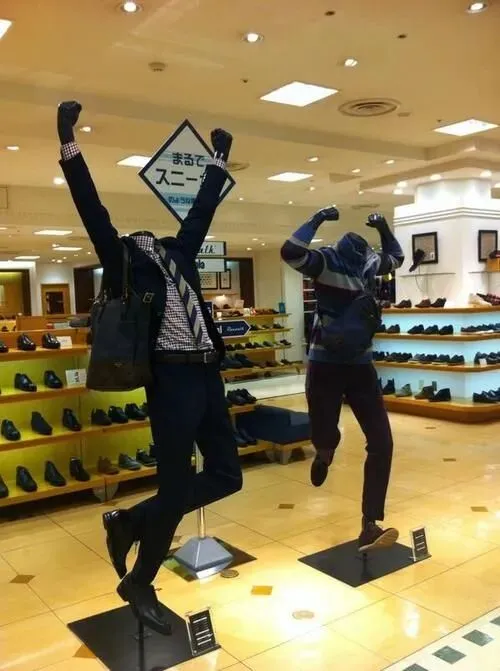 6.高兴的假人模特,看动作,应该是某件事情成功了吧。