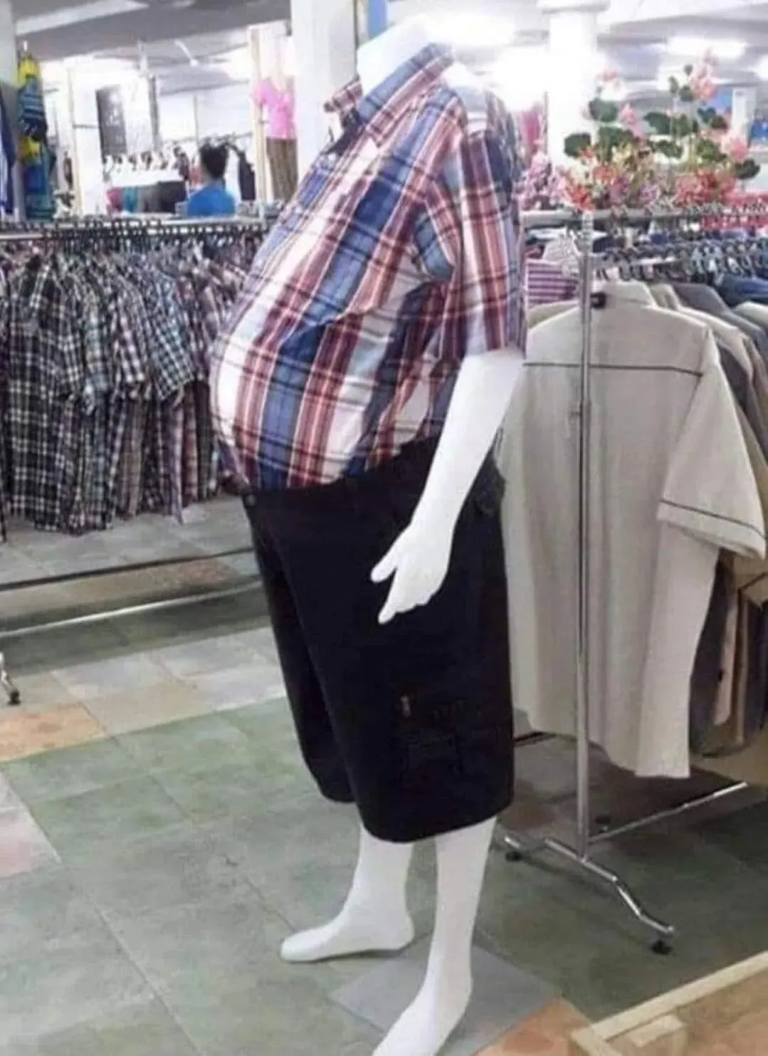 11.中年发福的服装假人模特,只能说店家有心了,这样的人群很大,模型却很少。