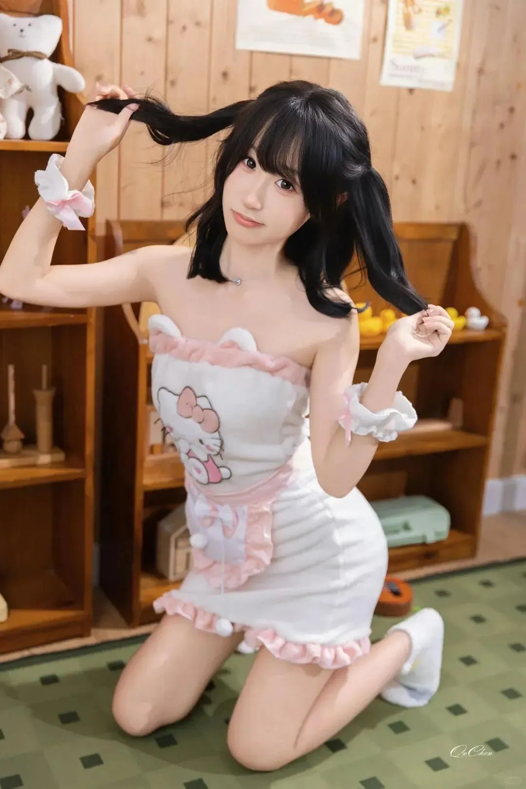 西湖边的柳树刚抽出新绿,我扛着相机找取景角度时,视线突然被不远处的身影勾住。那是个穿白色连衣裙的女生,鹅蛋脸衬着杏眼,樱桃唇微微嘟起,正对着湖面调整姿势。她的连衣裙领口有点低,露出精致的锁骨和饱满的胸型,腰肢纤细得仿佛一握就能断,裙摆下的长腿笔直白皙,踩着一双小白鞋却走出了猫步的慵懒。我正看得入神,她突然转过头来,声音软萌带着台湾腔:“哥哥,你也是摄影师吗?能不能帮我拍几张照片呀?”她的眼睛亮晶晶的,像藏着星星,我鬼使神差地点了点头。