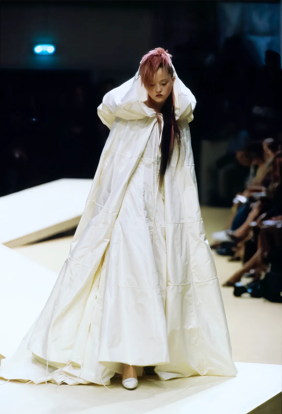香奈儿 1999/2000 秋冬高级定制时装秀,是戴文青木首次担任香奈儿高定压轴模特。她身穿标志性的兜帽新娘斗篷,搭配粉色莫霍克发型,至今仍是经典画面。
