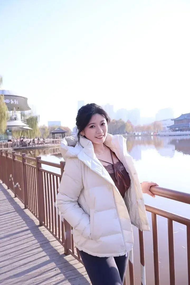 冬日甜酷.风穿搭指南.:棕.色蕾丝上.衣+白色羽.绒服的N.种打.开方式