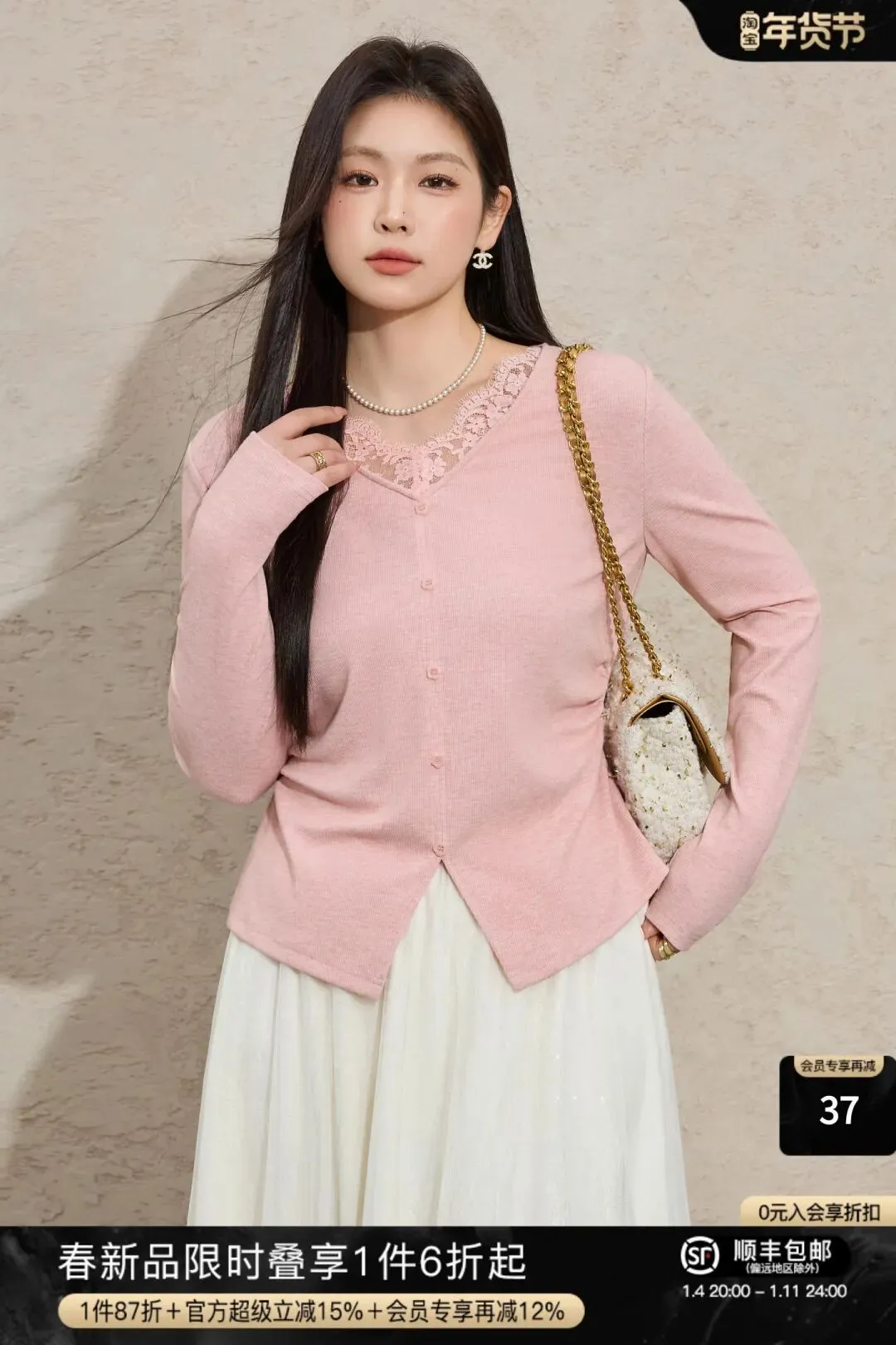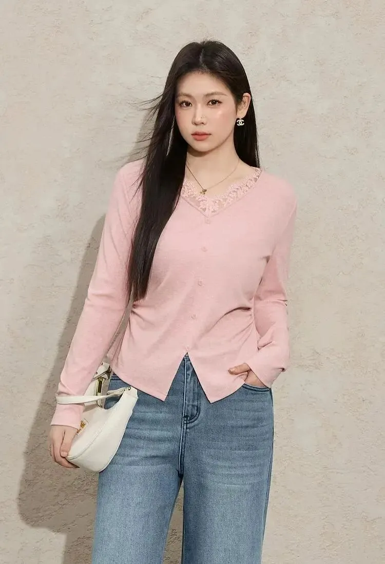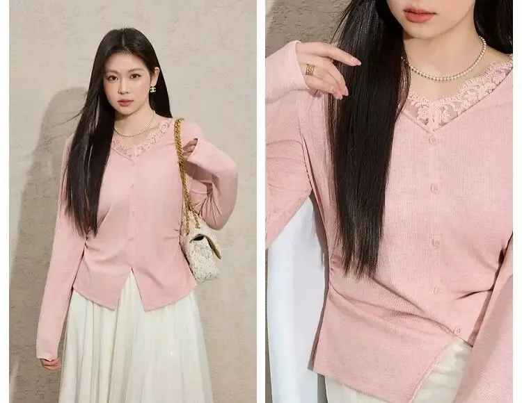 当前位置:首页>美女资讯>蓝语大码 | 蕾丝拼接收腰显瘦V领内搭T恤