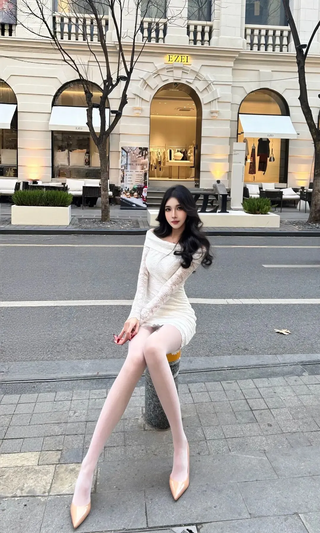 当前位置:首页>美女资讯>“白色蕾丝裙+透肤袜+裸色高跟”,温柔纯欲,优雅又撩人的街拍时尚魅力