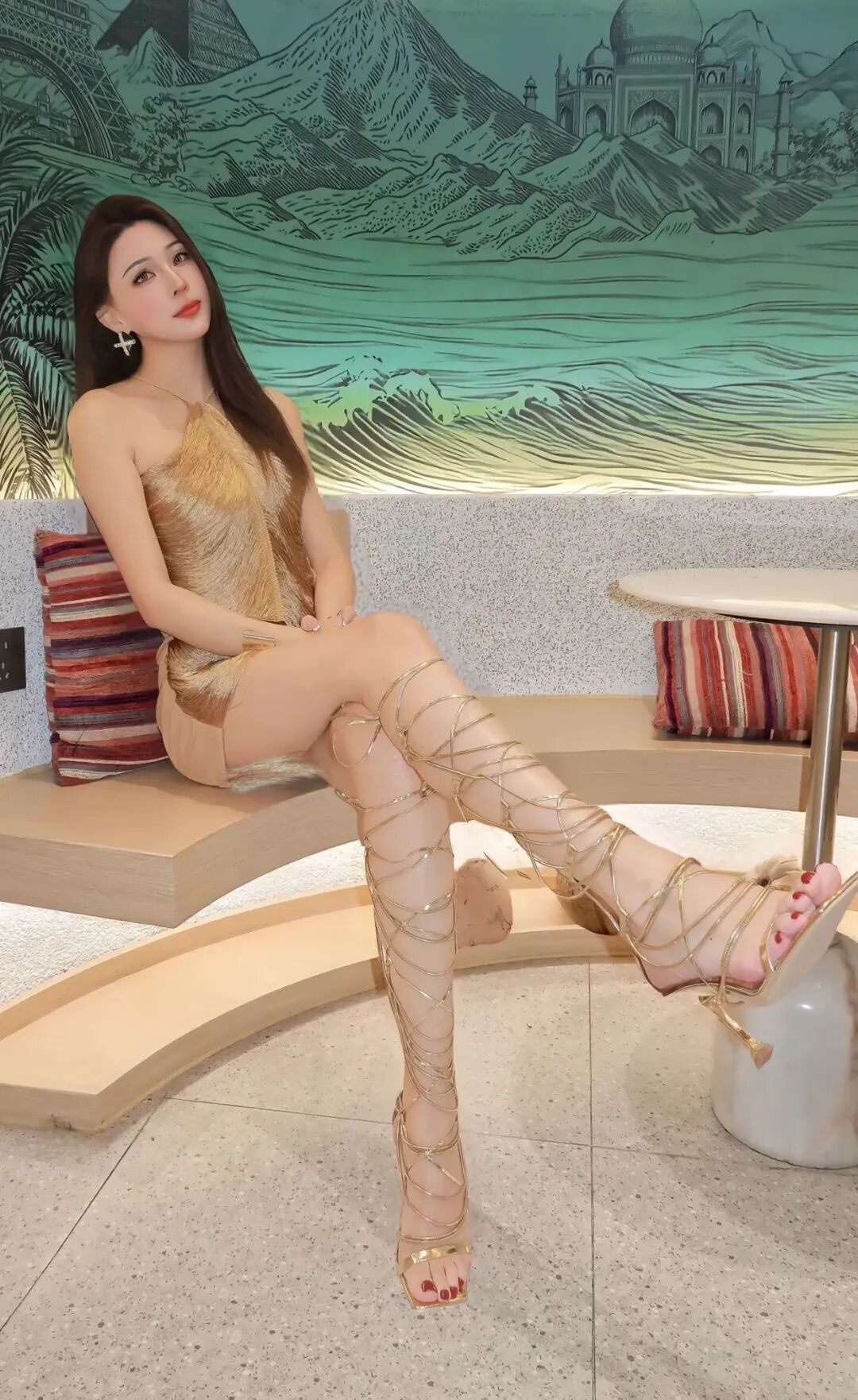 脚伸进去的瞬间,皮革挤压着磨红的地方,疼。但她没犹豫,系好踝带,站起来。身高增加了五厘米,视线里的湖面低了一些。开始沿着湖边慢慢走。高跟鞋踩在石板路上,声音清脆,和她刚才赤脚的静默形成对比。连衣裙随着步伐摆动,针织衫还搭在臂弯,随着动作一下一下轻拍她的腿。路过一片花圃,月季开得正好,大红色的,粉色的,黄色的。她停下,弯腰闻一朵黄月季。这个动作让连衣裙的领口垂下,从领口能看见更多。她没在意,只是闻——花香浓郁,甜得发腻。直起身时,头晕了一下。可能是晒久了,也可能是弯腰太急。她扶住旁边的栏杆,等那一阵晕眩过去。针织衫从臂弯滑落,掉在地上。她没立刻捡,而是先站直,深呼吸,然后才弯腰捡起来。捡东西的姿势——腿伸直,弯腰,手够向地面——让连衣裙完全绷紧在背部。她能感觉到布料在肩胛骨处的拉伸,和腰臀处的包裹。如果有人从后面看,应该能看见完整的背部线条,和臀部的曲线。