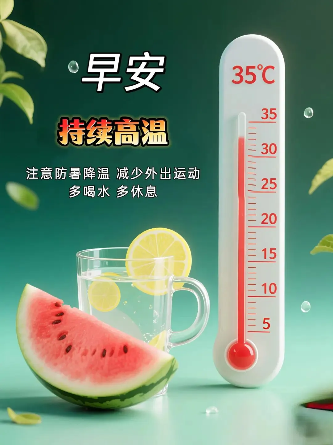 明媚夏日阳光照,防暑降温要做好;适度锻炼身体棒,营养均衡保健康;愿你清凉过夏季,平安欢笑度时光。早上好!🌹🏝️💯🌞🍎🎉🤝❤️